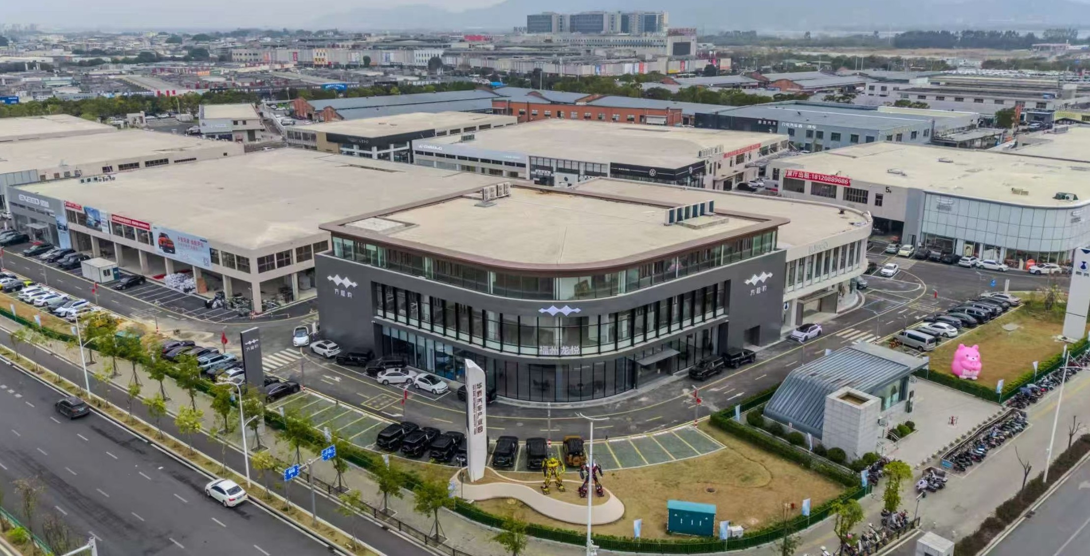 園區總建筑面積約5.2萬m²,重點引進新能源汽車研發、零配件制造、軟件開發、銷售及售后等相關企業,目前已入駐18家車企。通過整合新能源汽車銷售展示、智能維修、汽車金融及個性化配套商業等多元業態,園區致力打造福州創新型一站式新能源汽車服務平臺。